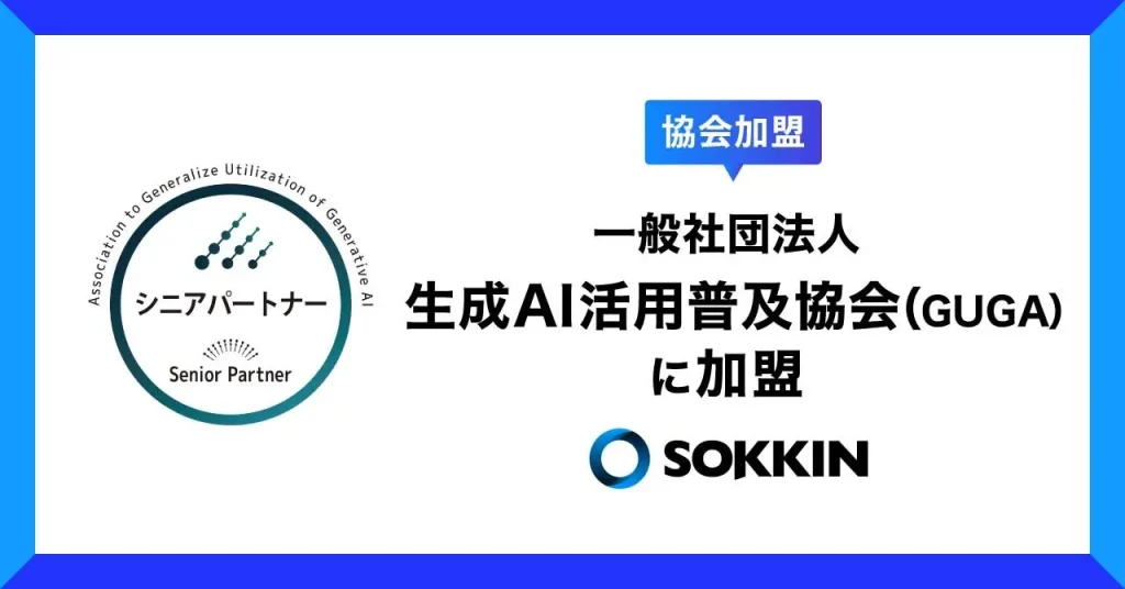 「PR TIMES」記事掲載のお知らせ 『株式会社SOKKIN、一般社団法人生成AI活用普及協会(GUGA)にシニアパートナーとして加盟』