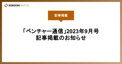 「ベンチャー通信」2023年9月号 記事掲載のお知らせ(SOKKIN MATCH)